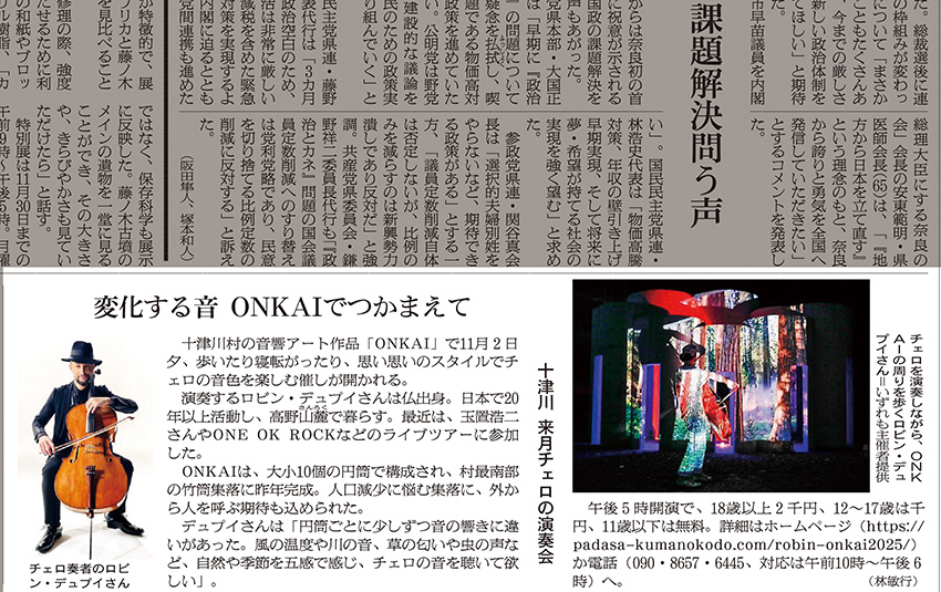 2025年10月22日 朝日新聞朝刊 奈良版に、11月2日に開催予定のロビンライブが紹介されました。