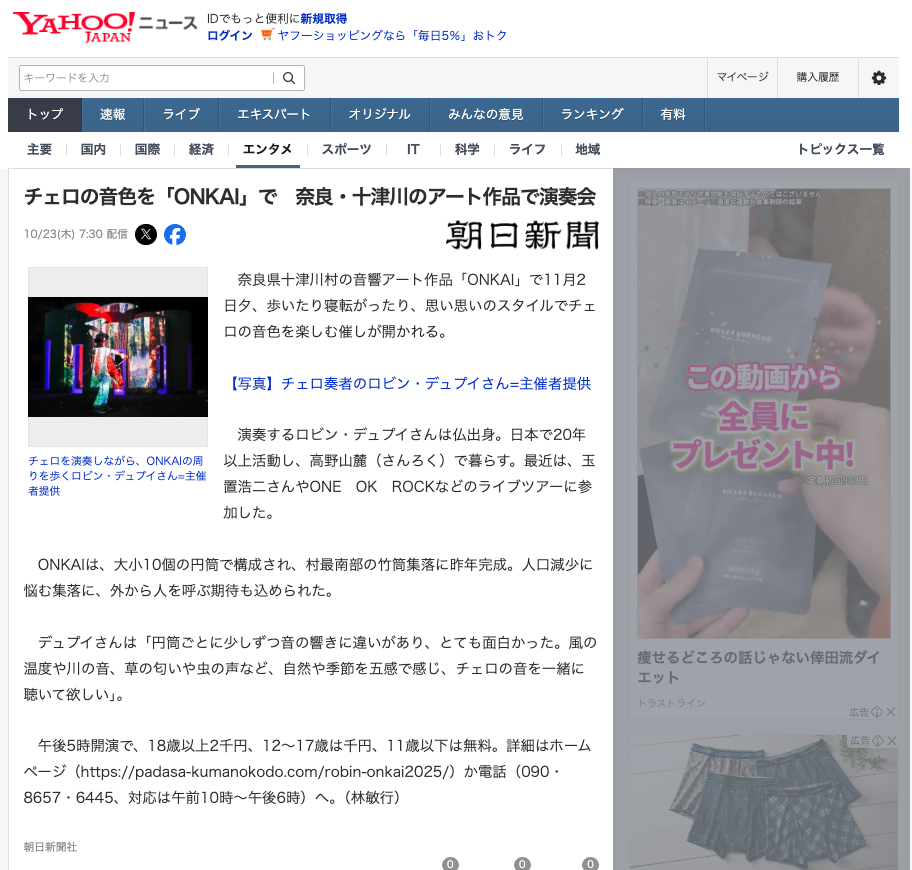 2025年10月23日 Yahooニュースエンタメ朝日新聞に、11月2日に開催予定のロビンライブが紹介されました。